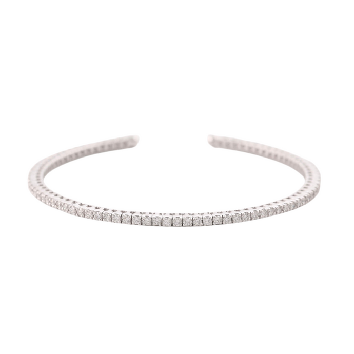 • 18K White Gold Diamond Patti Tennis Cuff Bangle