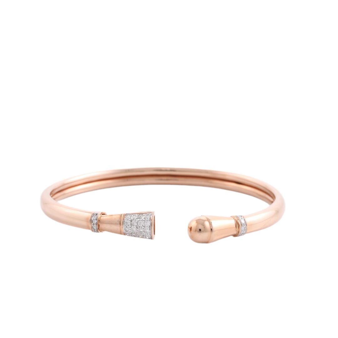 18K Rose Gold and Cluster Diamonds Fluted Drop Cuff Bangle