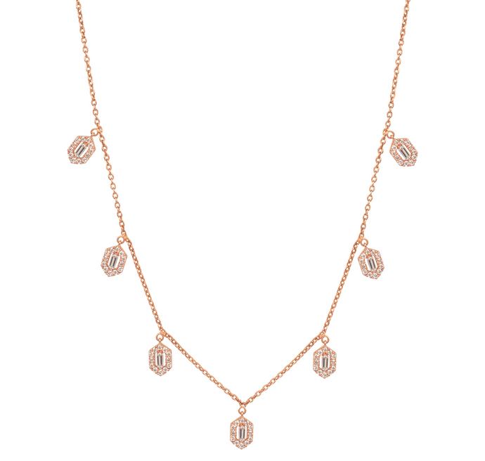 18K Gold and Diamond Hexagon Halo Chain Necklace
