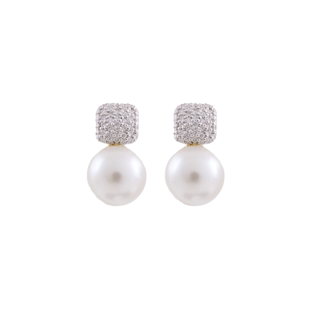 18K White Gold and Diamonds Cushion Dome Earrings with Detachable Pearl