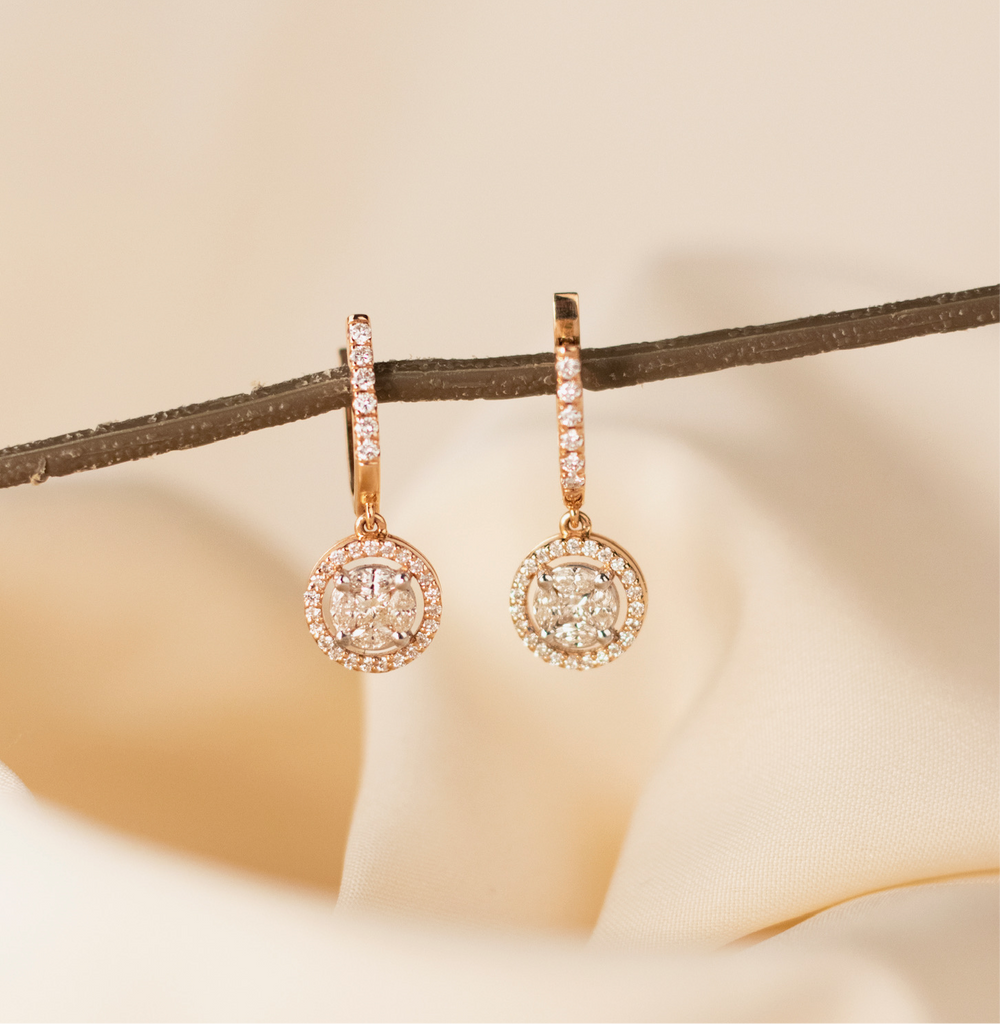 18K Gold English Lock Diamonds Cluster Earring with a Round Halo