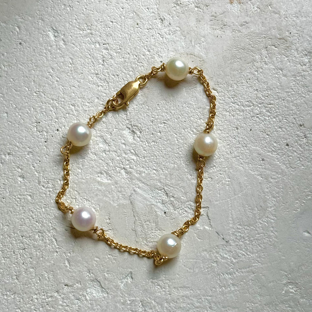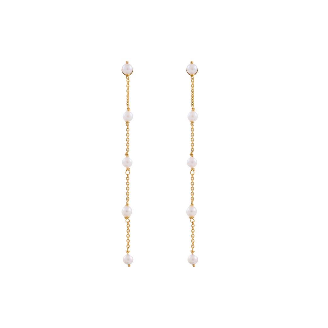 18K Yellow Gold and Graduated Pearl Chain Earrings