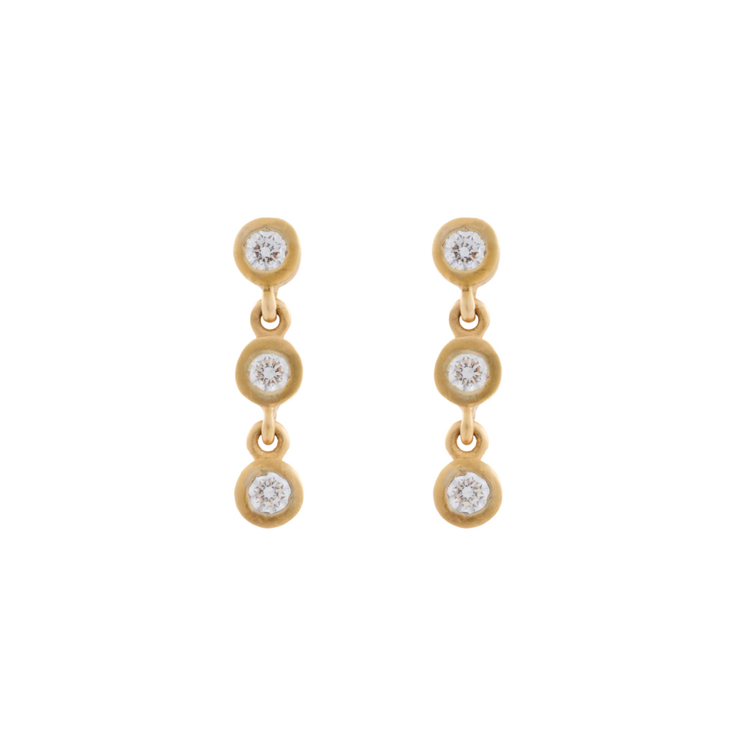 18K Yellow Gold and Diamonds Bezel Chain Short Earrings