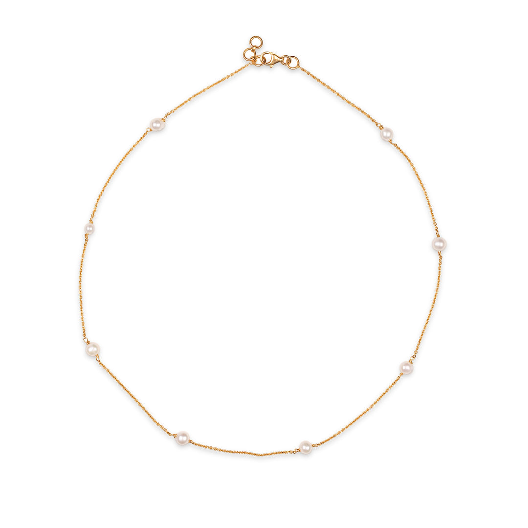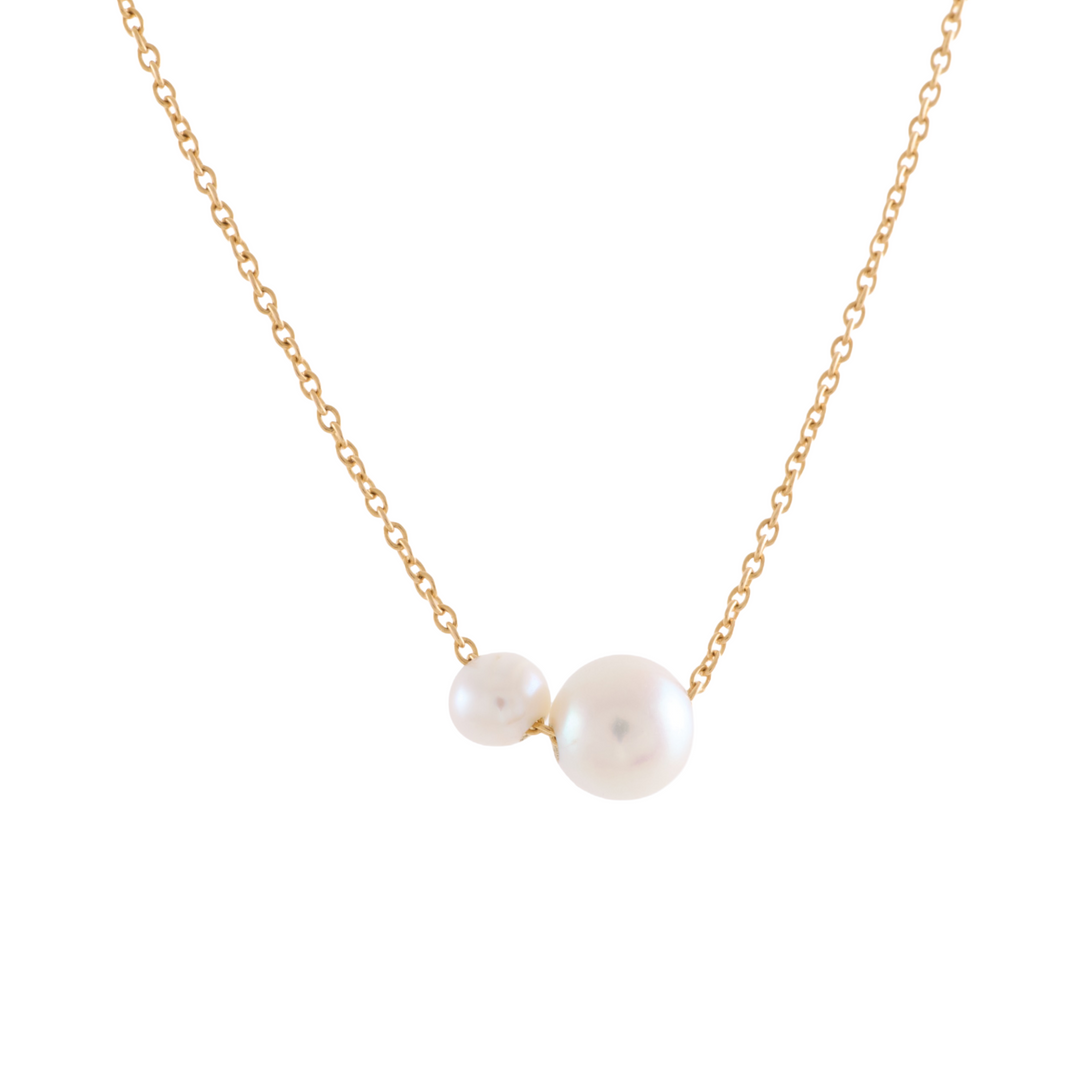 18K Yellow Gold Double Round Pearl Pendant Necklace