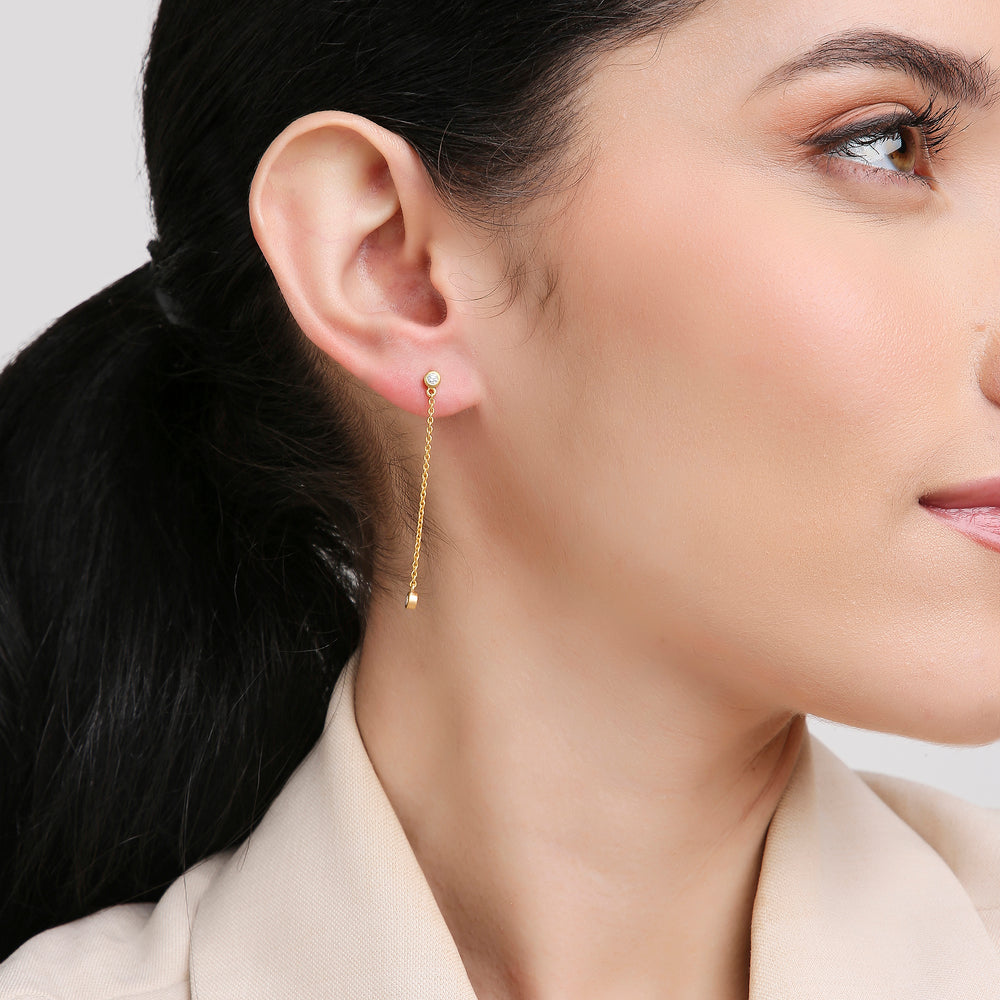 18K Yellow Gold and Diamonds Bezel Chain Long Earrings