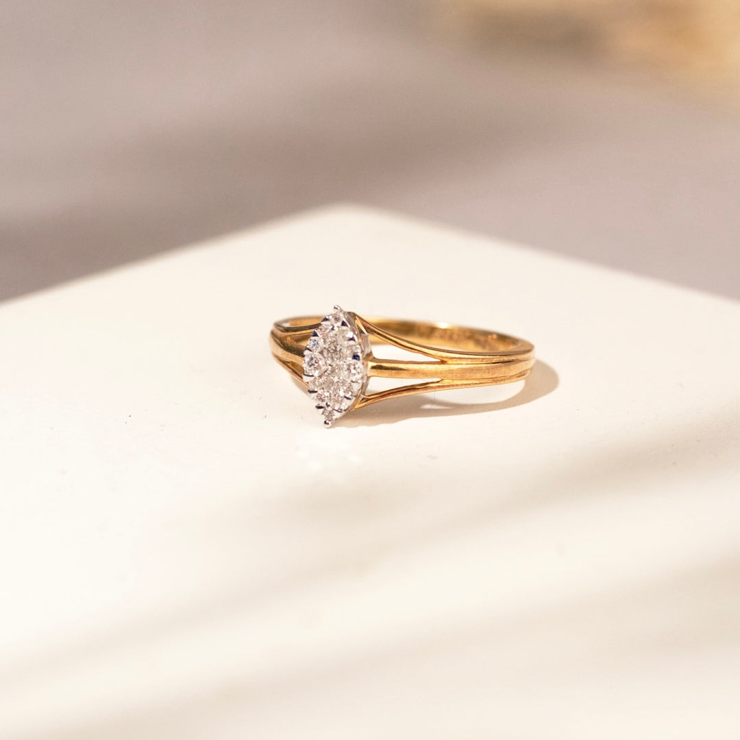 18K Gold and Diamonds Vintage Style Cluster Marquise Ring