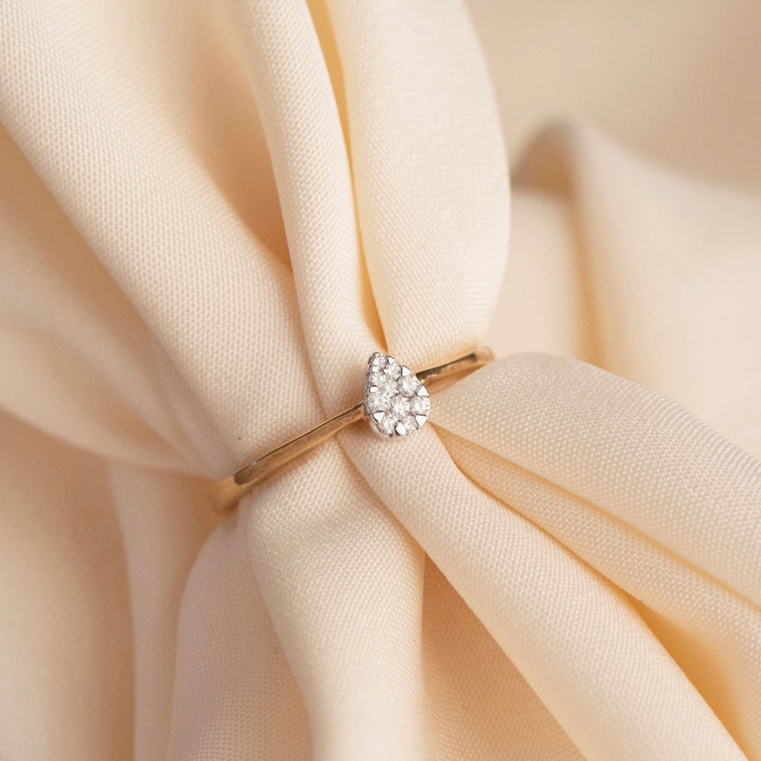 18K Gold and Diamonds Vintage Style Cluster Pear Ring